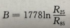 式中,RT1為溫度了T1(K)時的零功率電阻值;RT2為溫度T2(K)時的零功率電阻值: T1 T2為兩個被指定的溫度,K。B值是NTC熱敏電阻的電阻-溫度特性用公式計算的基礎數值,用在數字表達中,表示與絕對溫度相對應的電阻。對于常用的NTC熱敏電阻,B值范圍一般在2000~ 6000K之間。B值是由25℃(298.15K)和50℃(323.15K)的零功率電阻值計算而得到的,B值在工作溫度范圍內并不是一個嚴格的常數。將熱敏電阻25℃時的零功率電阻值R0和85℃時的零功率電阻值RT,以及25℃和85℃的絕對溫度T0=298K和TT= 358K代入負溫度系數熱敏電阻溫度方程,可得