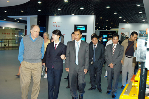 在長城電器集團,愛德華·普雷斯科特教授先后觀看了公司宣傳片、產品展示廳,詢問了企業的戰略規劃和現有的資金、技術情況。
